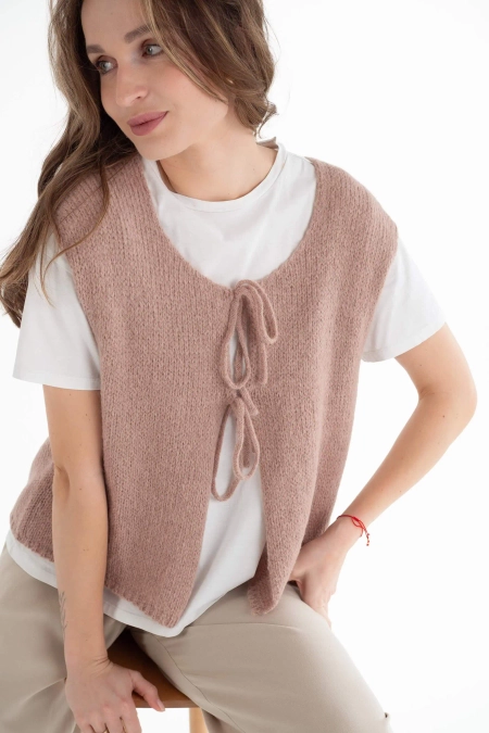 Dzianinowa kamizelka z suri alpaki ROSALIA cappucino