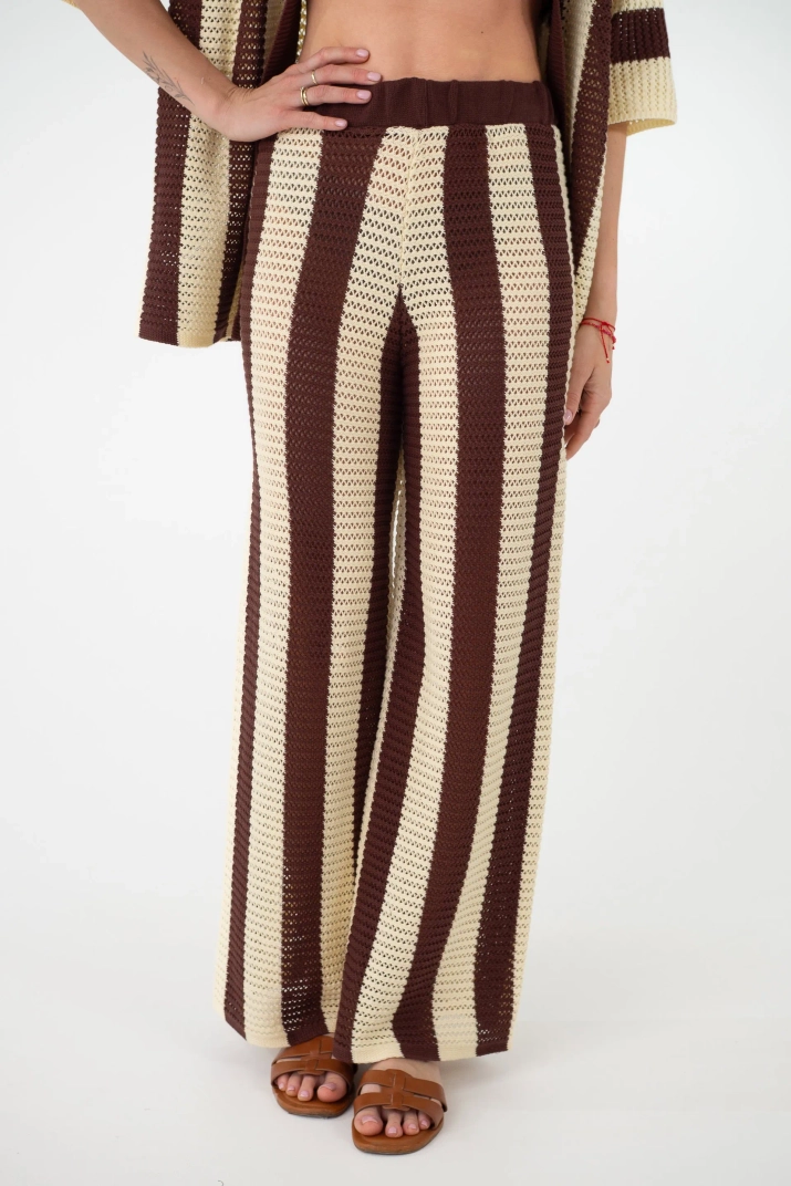 Ażurowe spodnie w paski AVENA czekoladowo-waniliowe